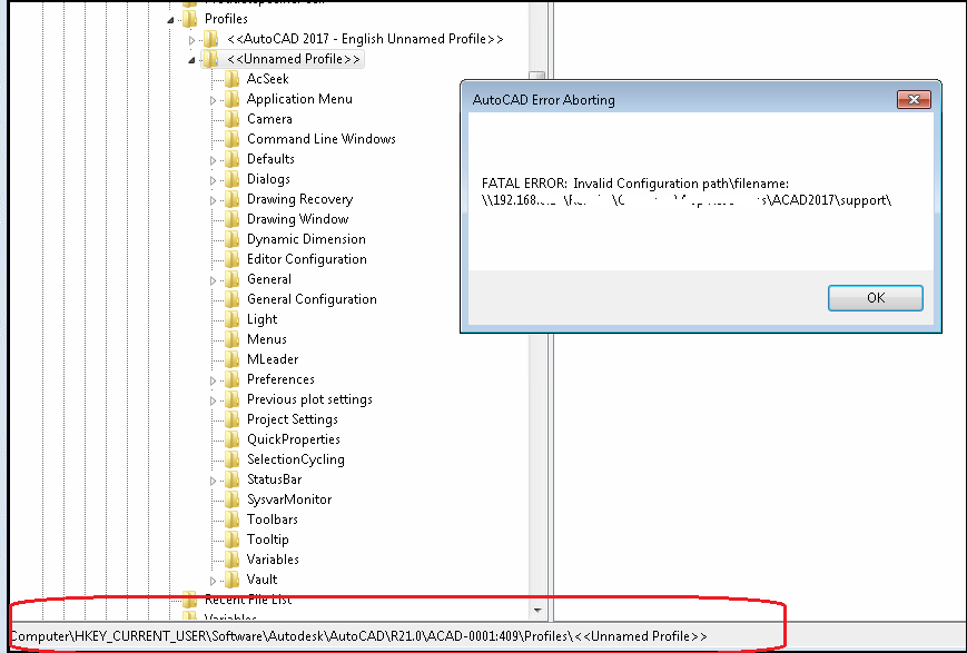 致命的なエラー Autocadを開くときに無効な設定パス ファイル名 Autocad Autodesk Knowledge Network