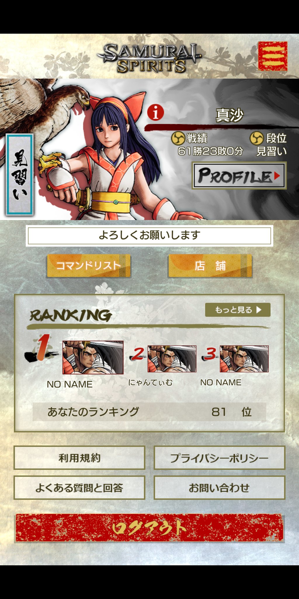 真沙 A Twitter アーケード版サムライスピリッツのアプリ いまだに段位やアイコン変更が反映されないんだけど何が原因なんだろうか 名前の横に 赤い マークが付いてるのが気になる