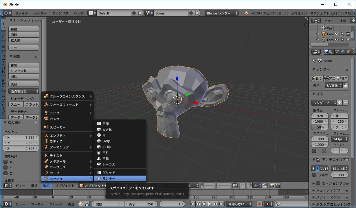 Blenderのプリミティブメッシュをpythonで操作しよう Rafkaの実験室