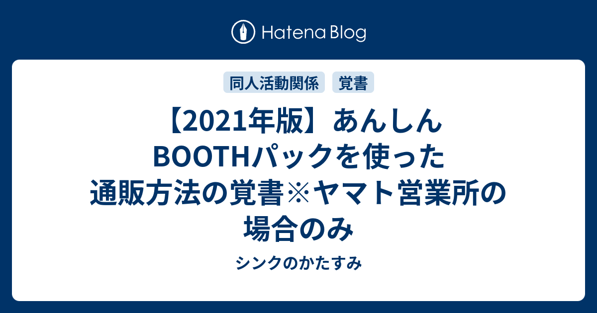 あんしん Boothパックを使った通販方法の覚書 ヤマト営業所の場合のみ シンクのかたすみ