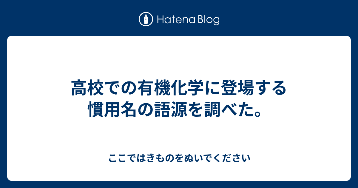 高校での有機化学に登場する慣用名の語源を調べた ここではきものをぬいでください